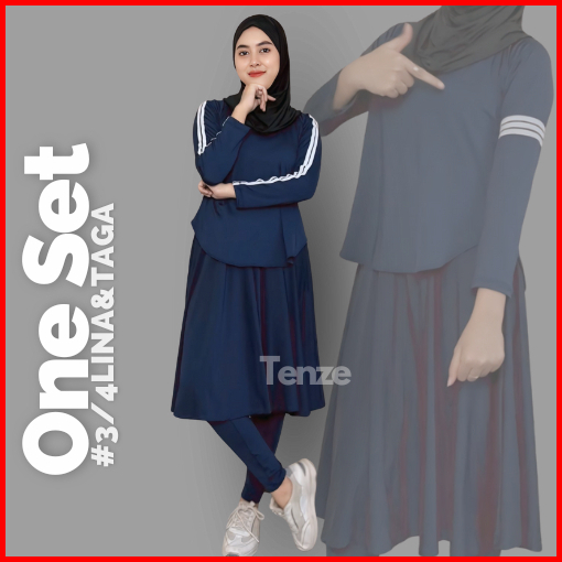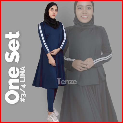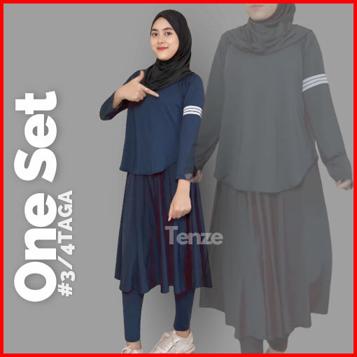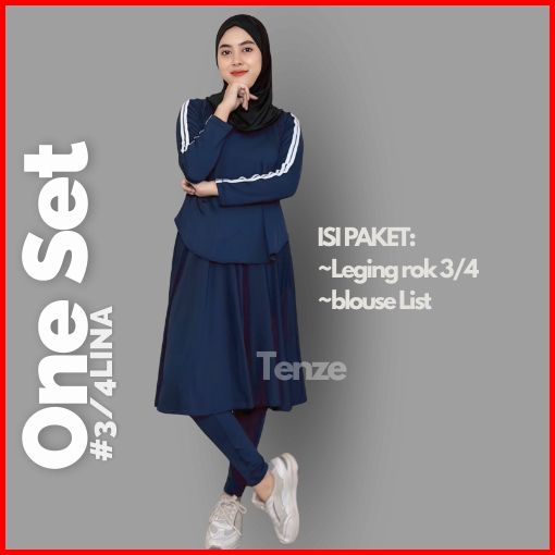 Setelan Olagraga Wanita Legging Rok Bawah Lutut X Atasan List
