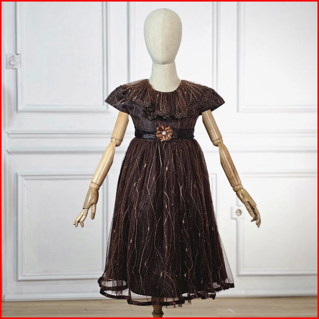 Gaun Anak Perempuan Terbaru Dress Cantik Leher Melati Mutiara Usia 1-12 Tahun