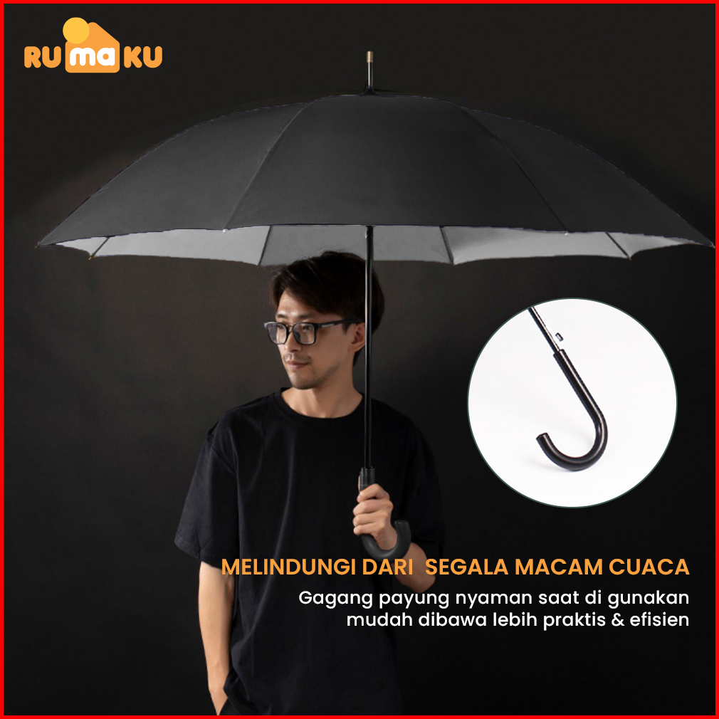 Rumaku Payung Jumbo Diameter 105 Cm Otomatis Motif Polos Rangka Kuat Kain Oxford Premium Anti Uv