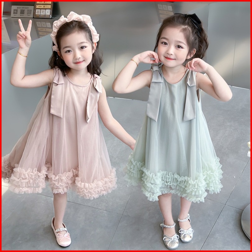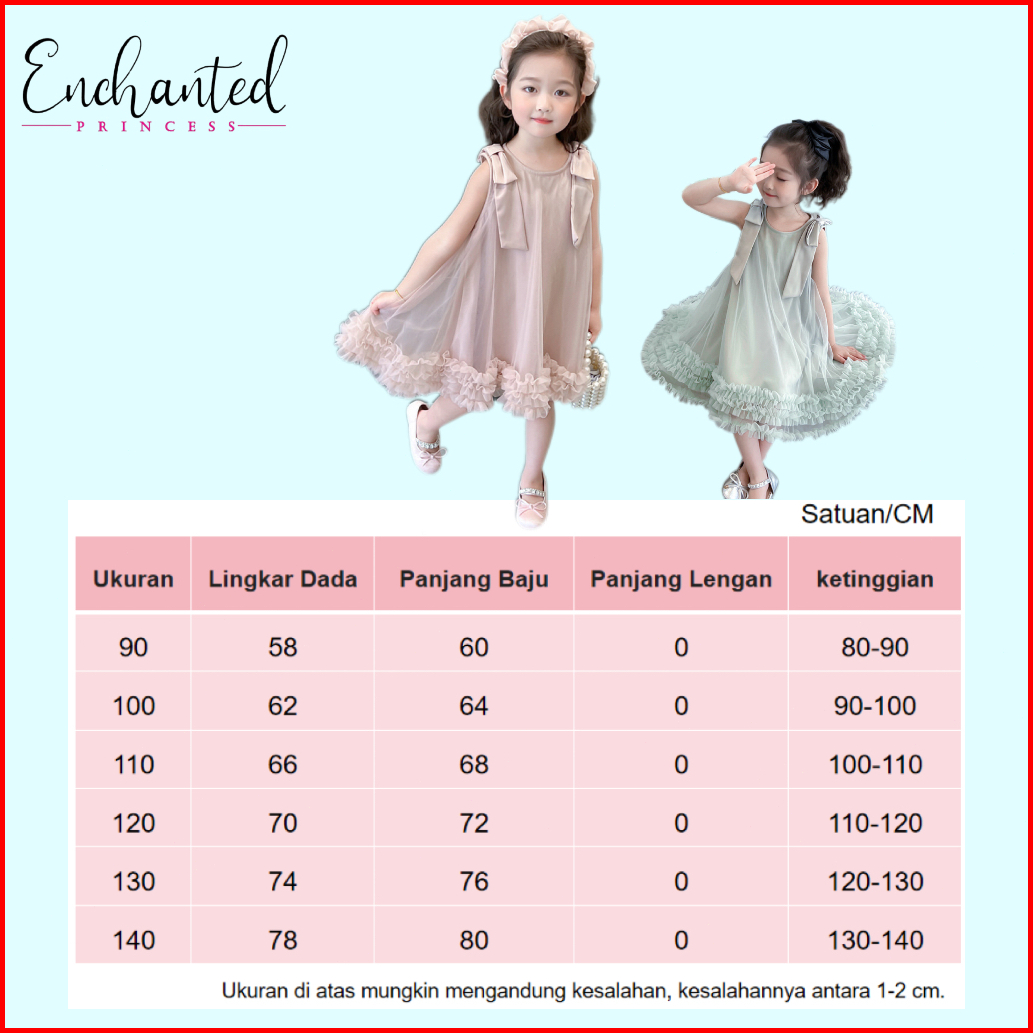 Enchanted Princessgaun Manis Anak Jaring Tanpa Lengan Warna Pink Mint Pita Elegant Nuansa Segar