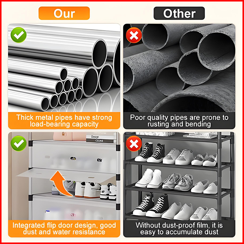 Rak Sepatu Tertutup Anti Debu 3 4 5 6 Lapis Tahan Debu Serbaguna Rak Susun Gantungan Tas Besi Anti Debu Serbaguna Esteti