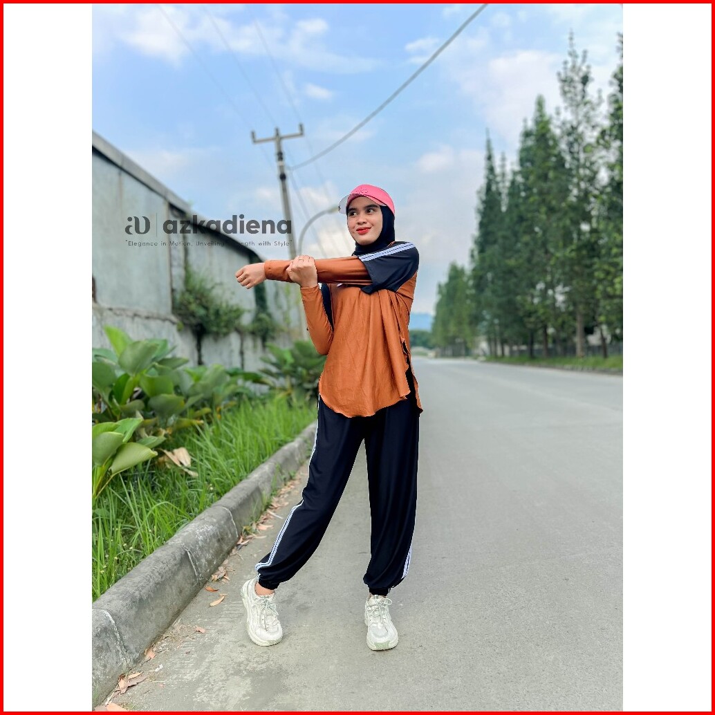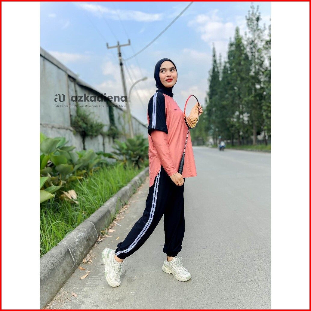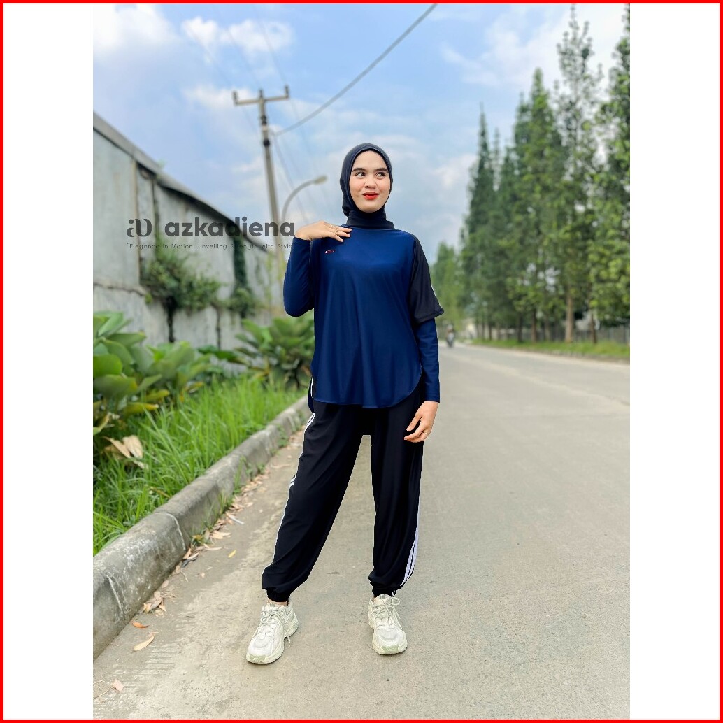 Azkadiena Setelan Baju Olahraga Azikra Wanita Berhijab 3 In 1 Celana Joger Perempuan