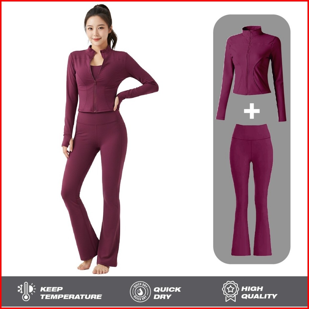 Rhid - Setelan Olahraga Wanita Jaket Lengan Panjang Anti Uv Dan Legging Polos Baju Gym Zumba Nyaman