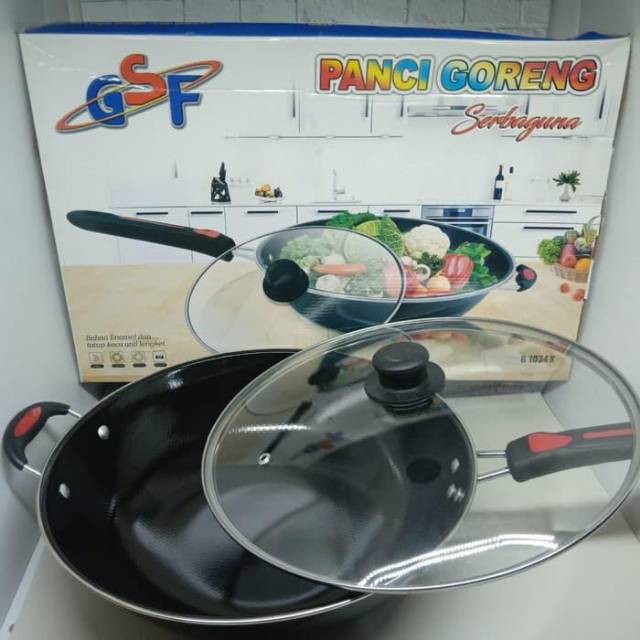 PANCI GORENG SERBAGUNA / WAJAN ENAMEL TUTUP KACA 32 cm GSF