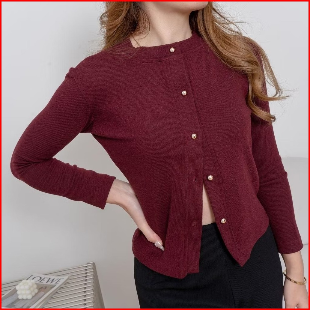 Lizzie Cardigan Cardigan Wanita Rib Knit Premium Atasanwanita Cardigan Model Korean Kancing Lengan