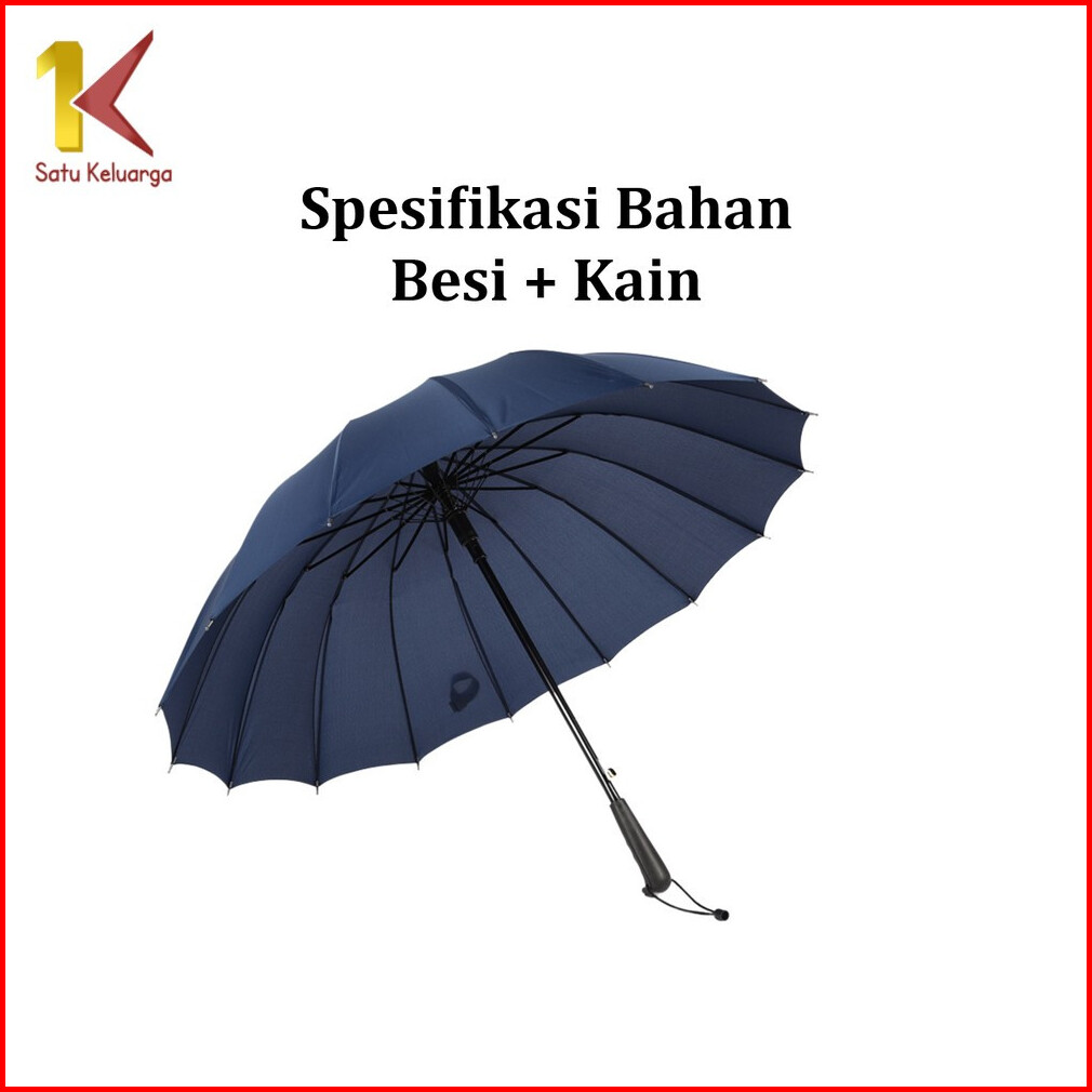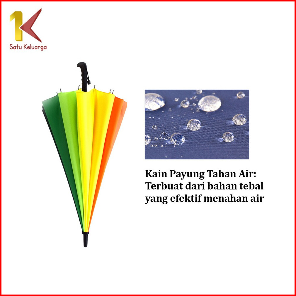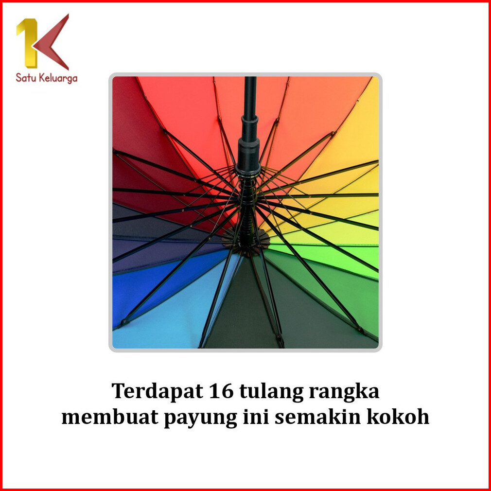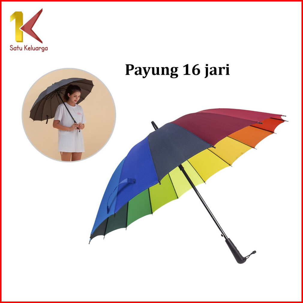 Satu Keluarga Payung 16 Jari Polos Buka Otomatis Gagang Lurus C1158 Payung Pelangi Jumbo Umrbrella