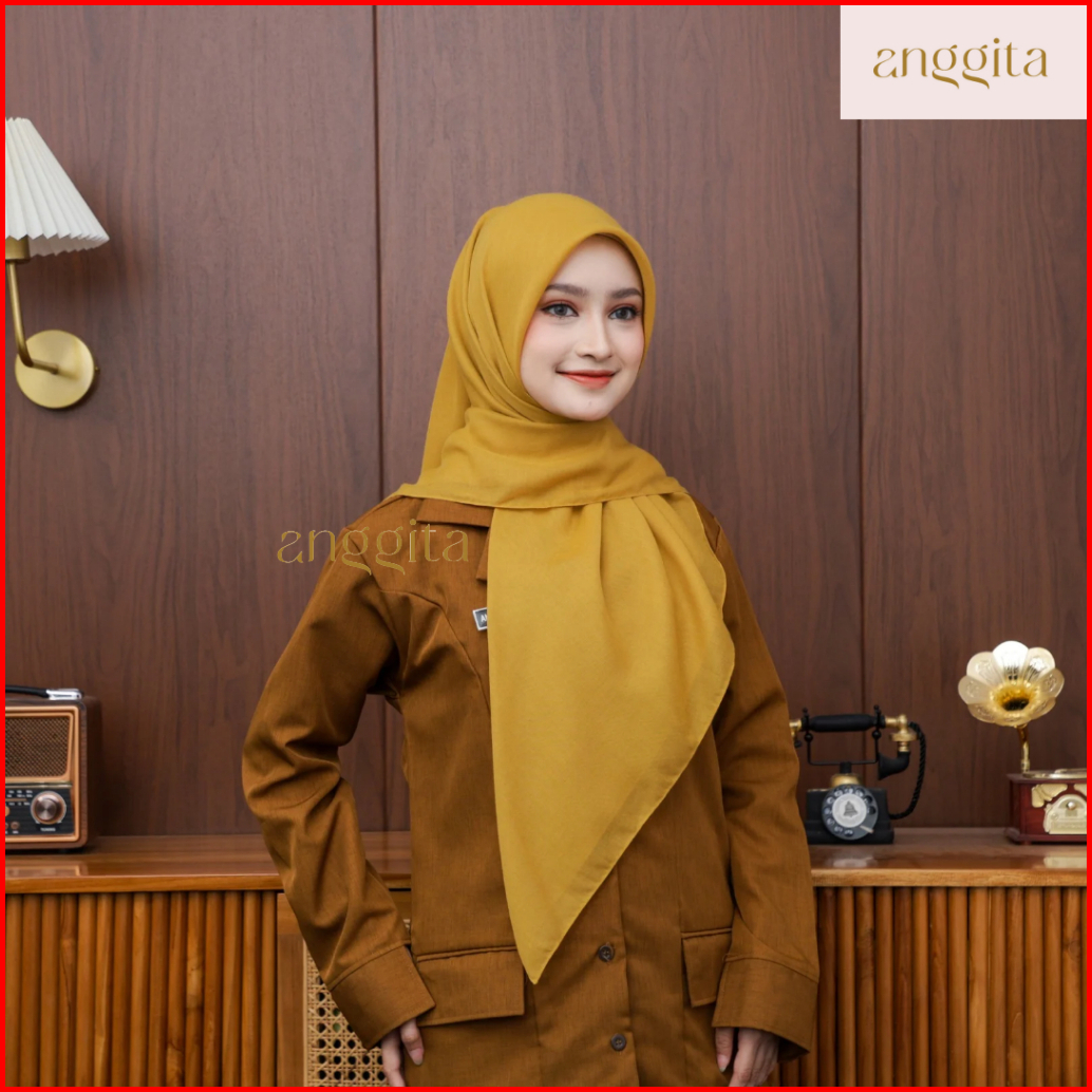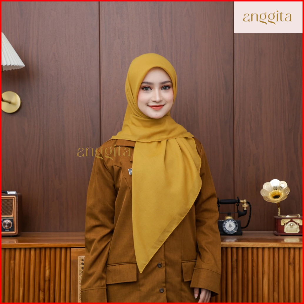 Anggita Jilbab Pns Mustard Segi Empat Paris Premium Polos Adem Kerudung Asn Dinas