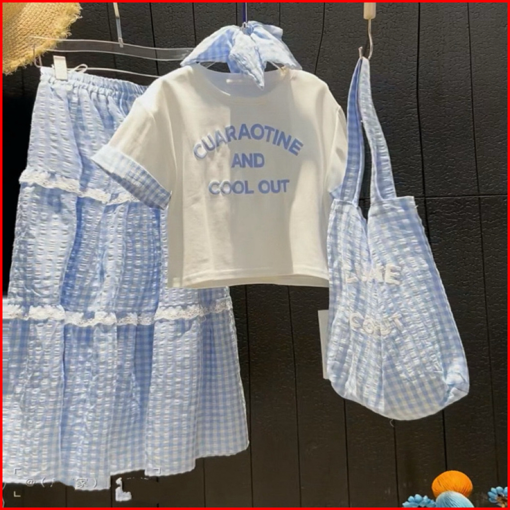 Luxica 4-14 Tahun Longdress Fashion Checker Biru Anak Perempuan Termurah Dress Santai Anak Cewek Panjang Korea Dress Ana