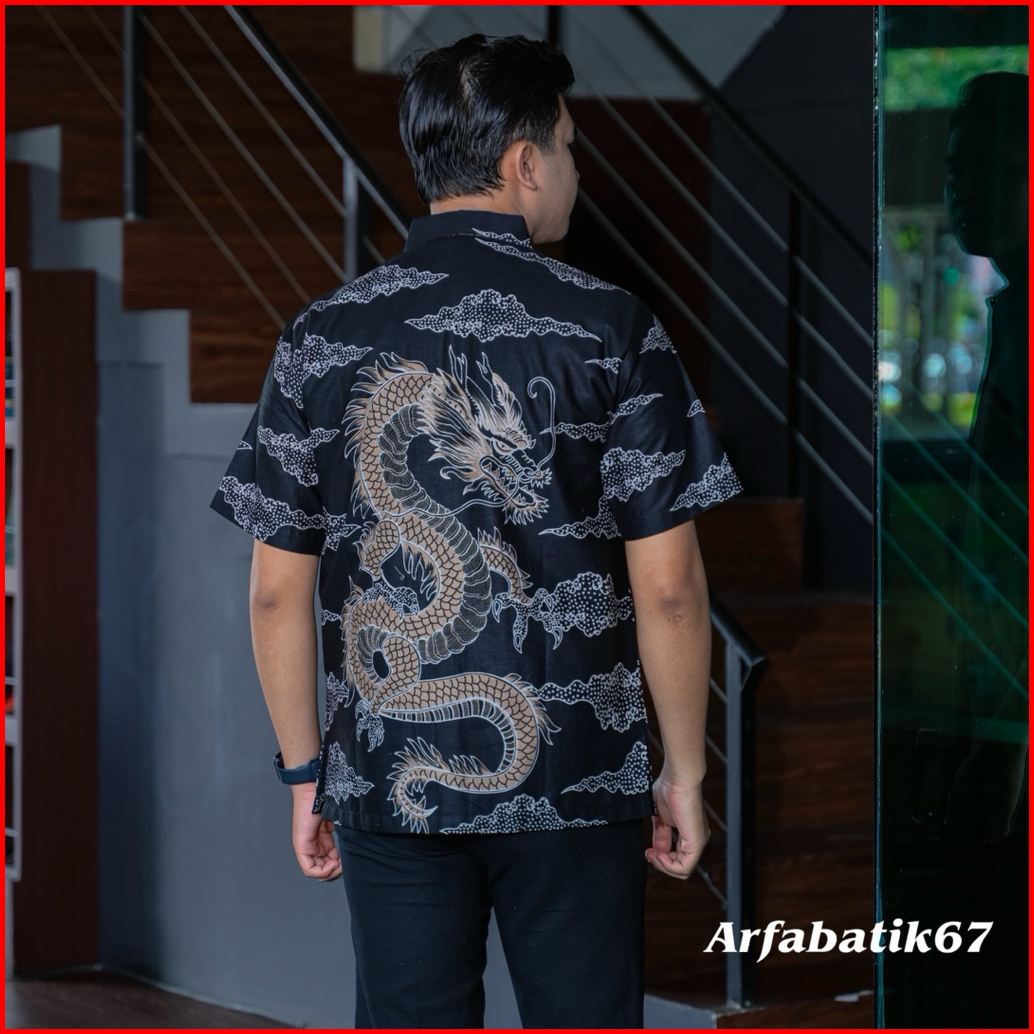 Naga Mocca Hitam Kemeja Batik Pria Lengan Pendek Katun Prima Premium Lapis Furing Hero Ready Seragaman By Arfabatik67
