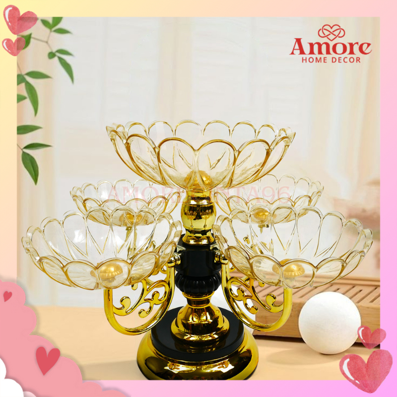 Piring Aesthetic Piring Buah Hidangan Crystal Plastik Bisa Putar / Wadah Buah 2 Tingkat 5IN1 / Tempat Cemilan permen dapat diputar 360 Derajat