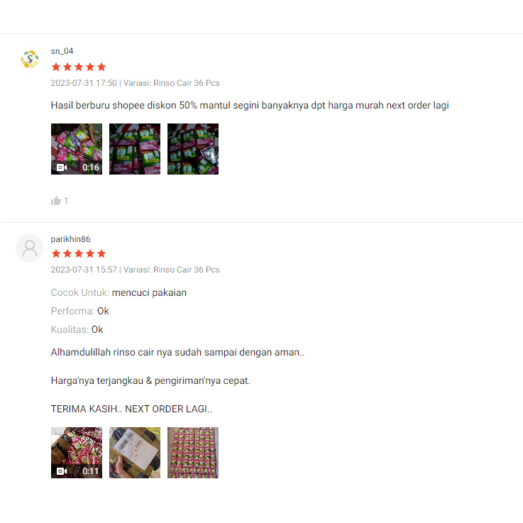 Rinso Renceng 39pcs 20ml Detergent Cair Anti Noda Laundry Praktis