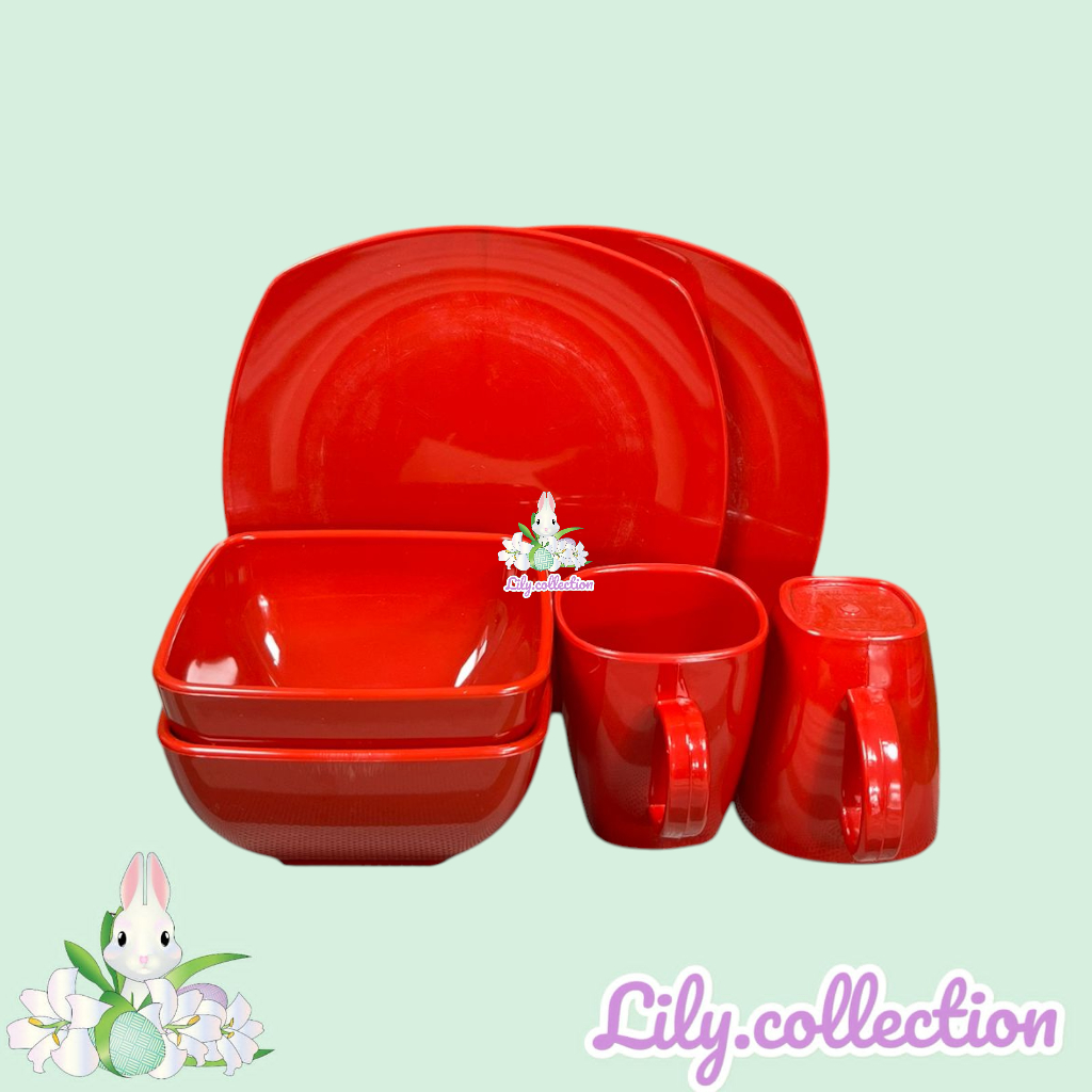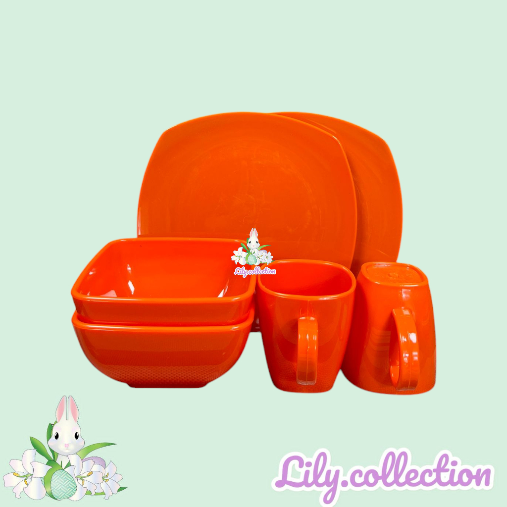 Piring Melamin - Mangkok Melamin - Gelas Melamin - Paket Piring Kotak Mangkok Gelas Melamin - ISI 6PCS - LILYCOLLECTION