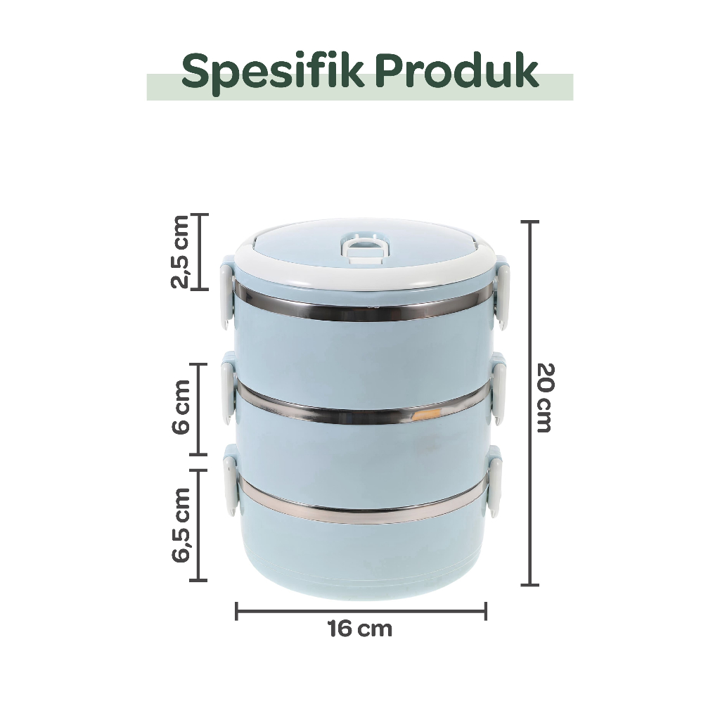 Rantang Polos 3 Susun Elegan Lunch Box Tempat Bekel Wadah Bekal Makanan Warna 363-1