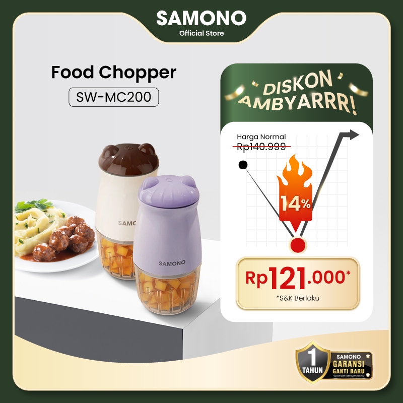SAMONO Food Chopper Multifungsi 300ml Penghalus Daging dan Bumbu Garansi Resmi 1 Tahun SW-MC200