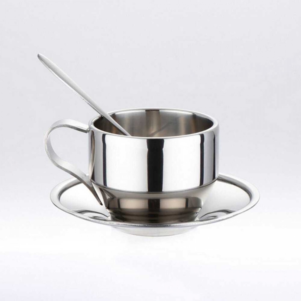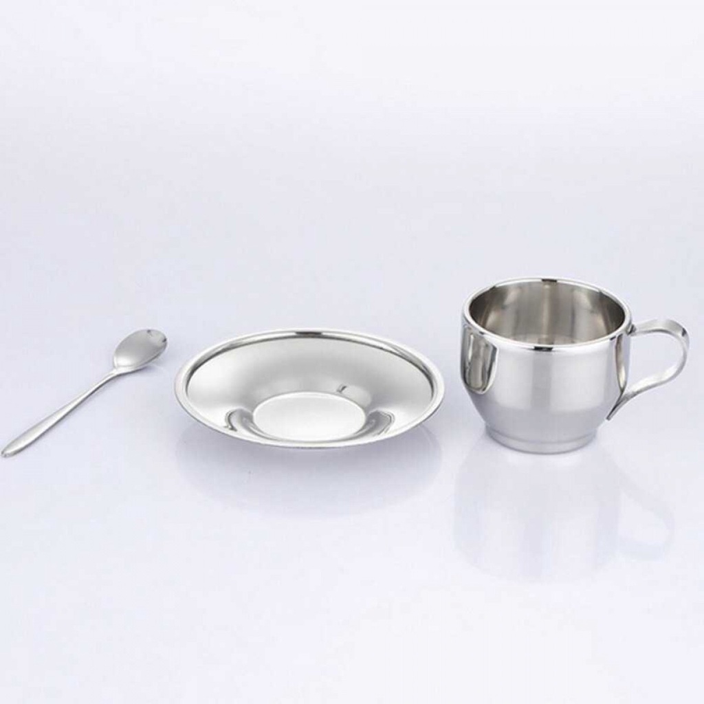 Set Cangkir Piring Kopi Milan Stainless Steel Cup Set 180 ml - JK120