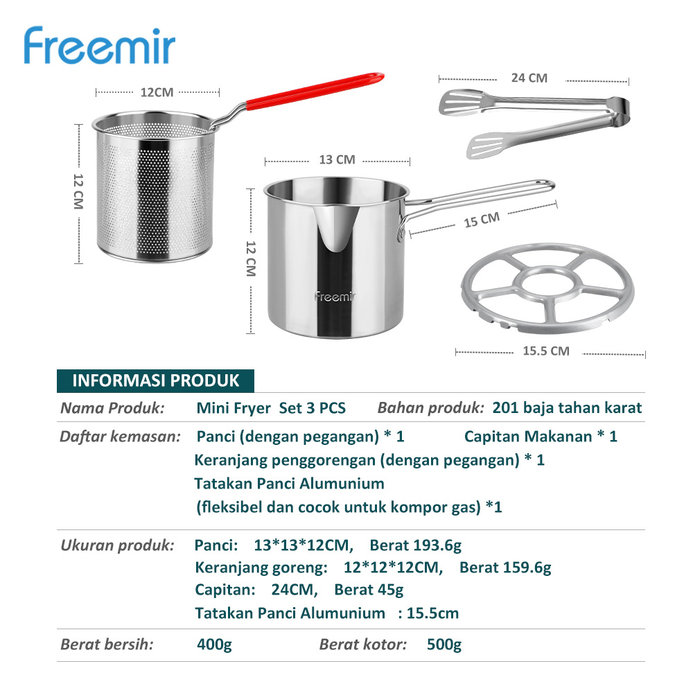 Special freemir Deep Fryer 4 in 1 Set Stainless Steel Anti Karat Multifungsi Bisa Goreng dan Rebus
