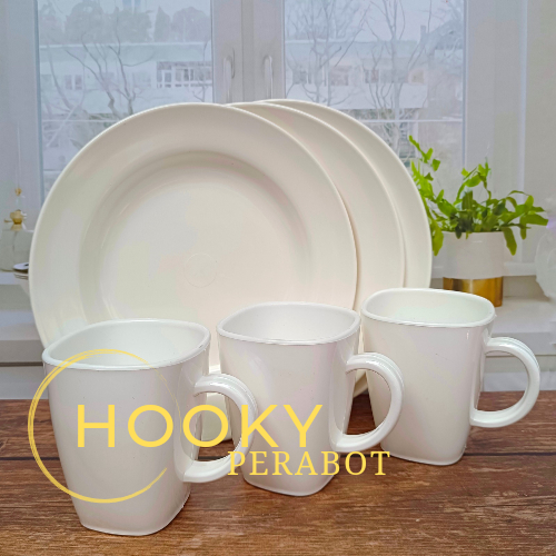 Promo set melamin hemat isi 2 piring kotak 2 piring bulat 2 cangkir melamin tebal tahan panas