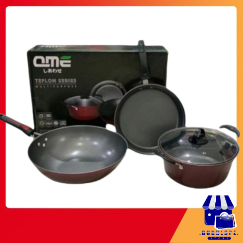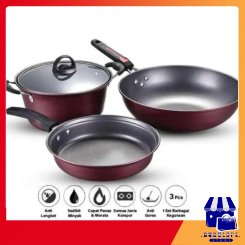 QME Panci Wajan Teflon Set Panci Teflon Penggorengan Set 3 Pcs Pans Pots