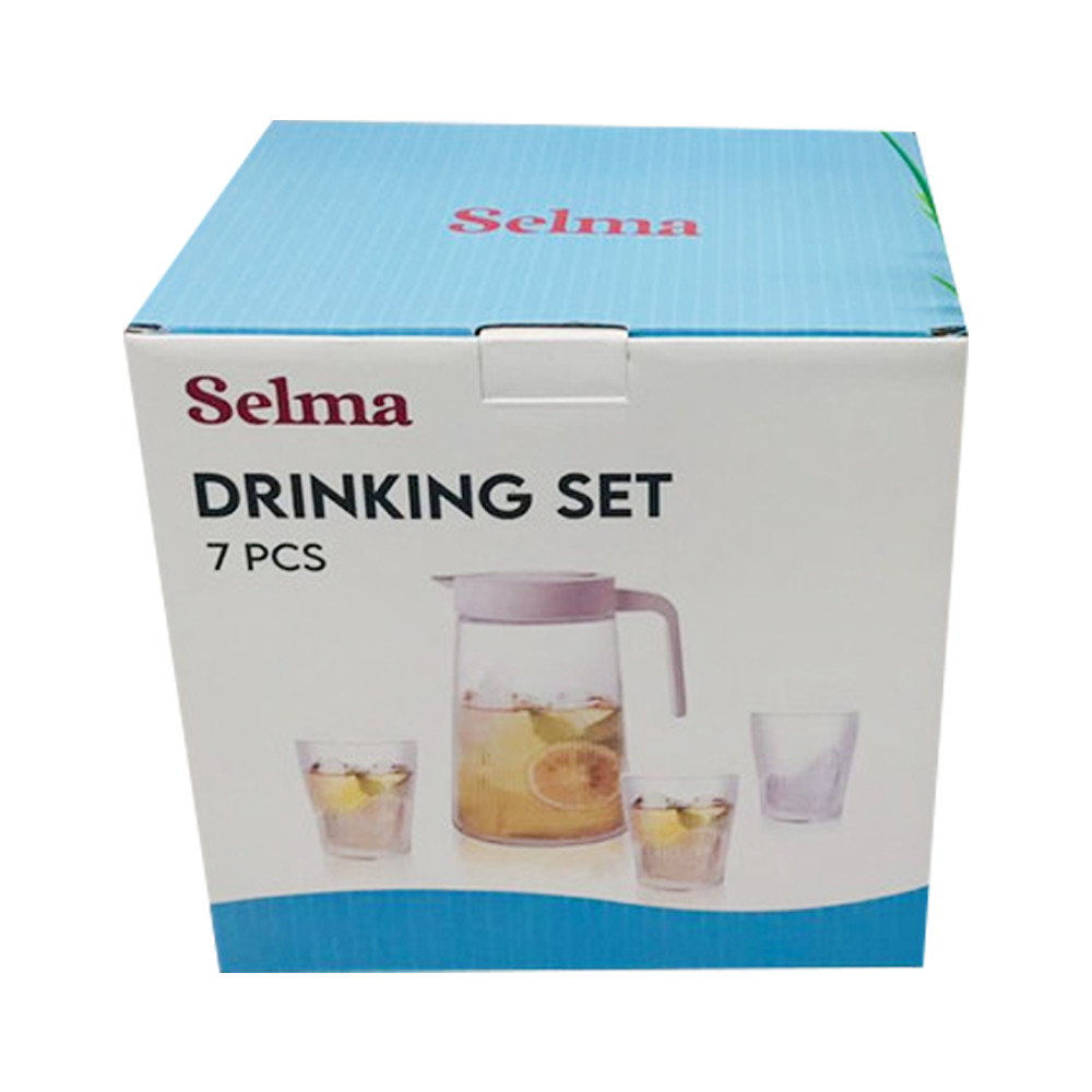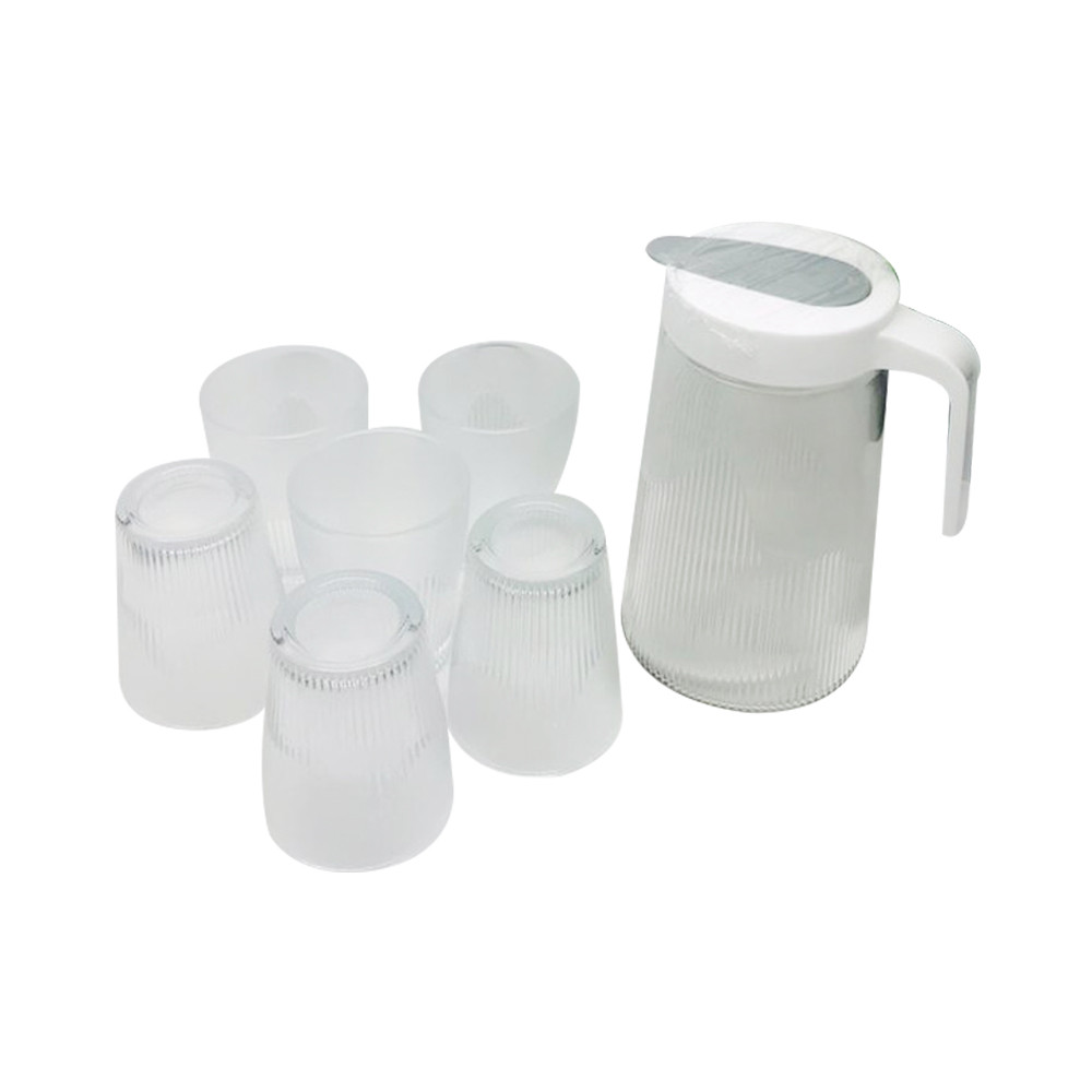 Selma Set 7 Pcs Jade Teko Minum & Gelas Transparan Water Jug Pitcher Dengan Tutup Dan Handle Peralatan Minum Wadah Penyimpanan Air