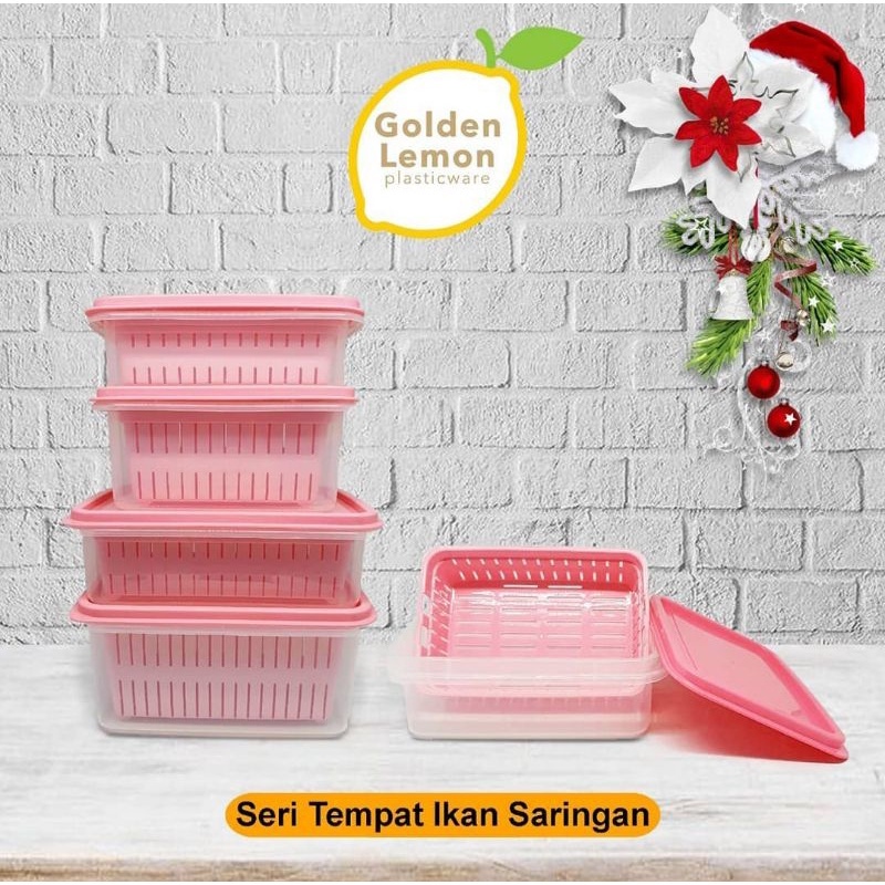 Set 4Pcs Kotak Tempat Makan Saringan Ikan Daging Buah Sayur Serbaguna Golden Lemon