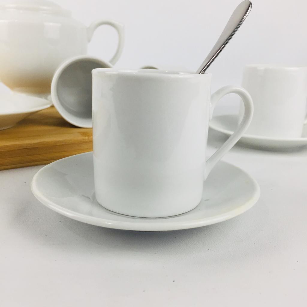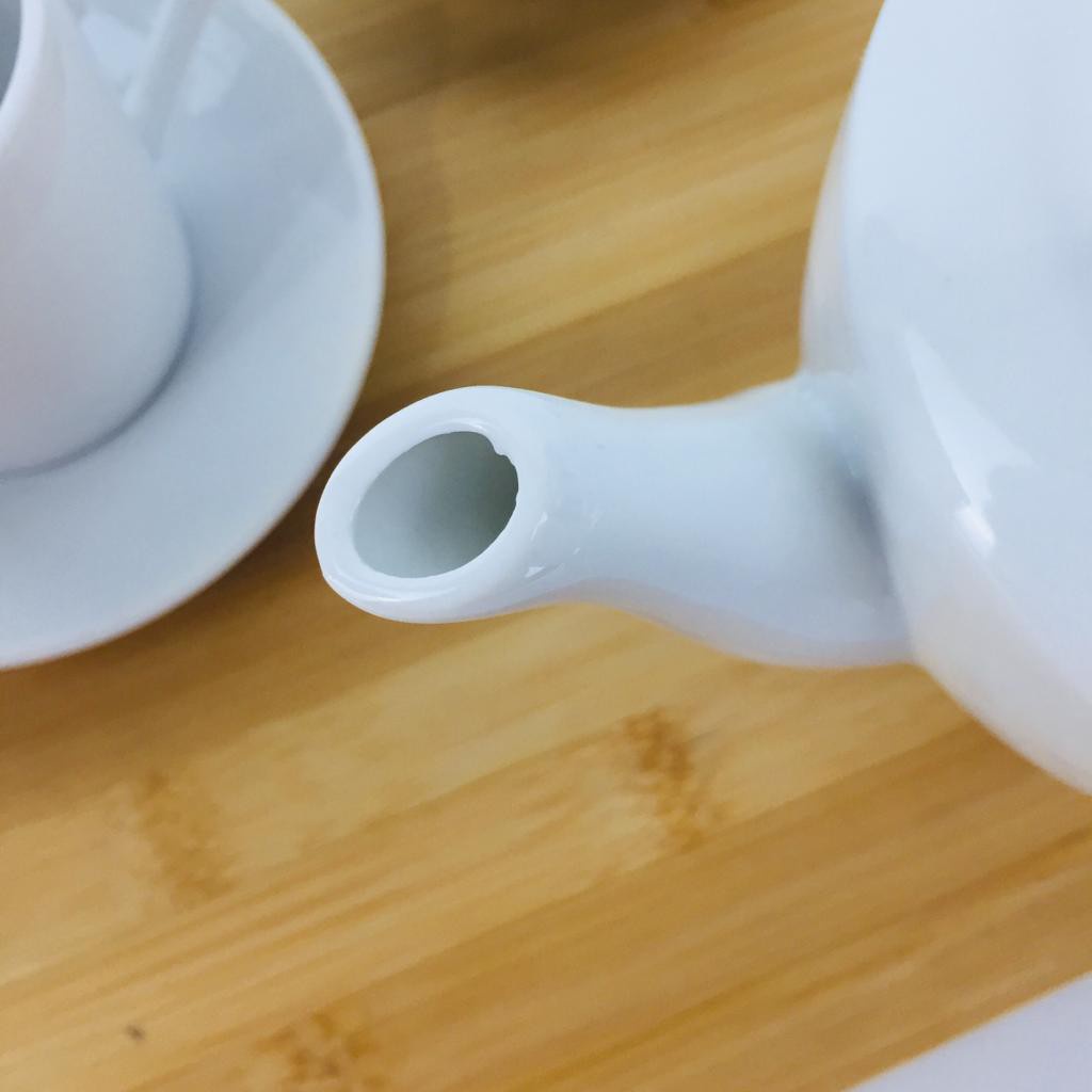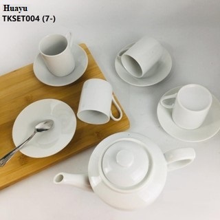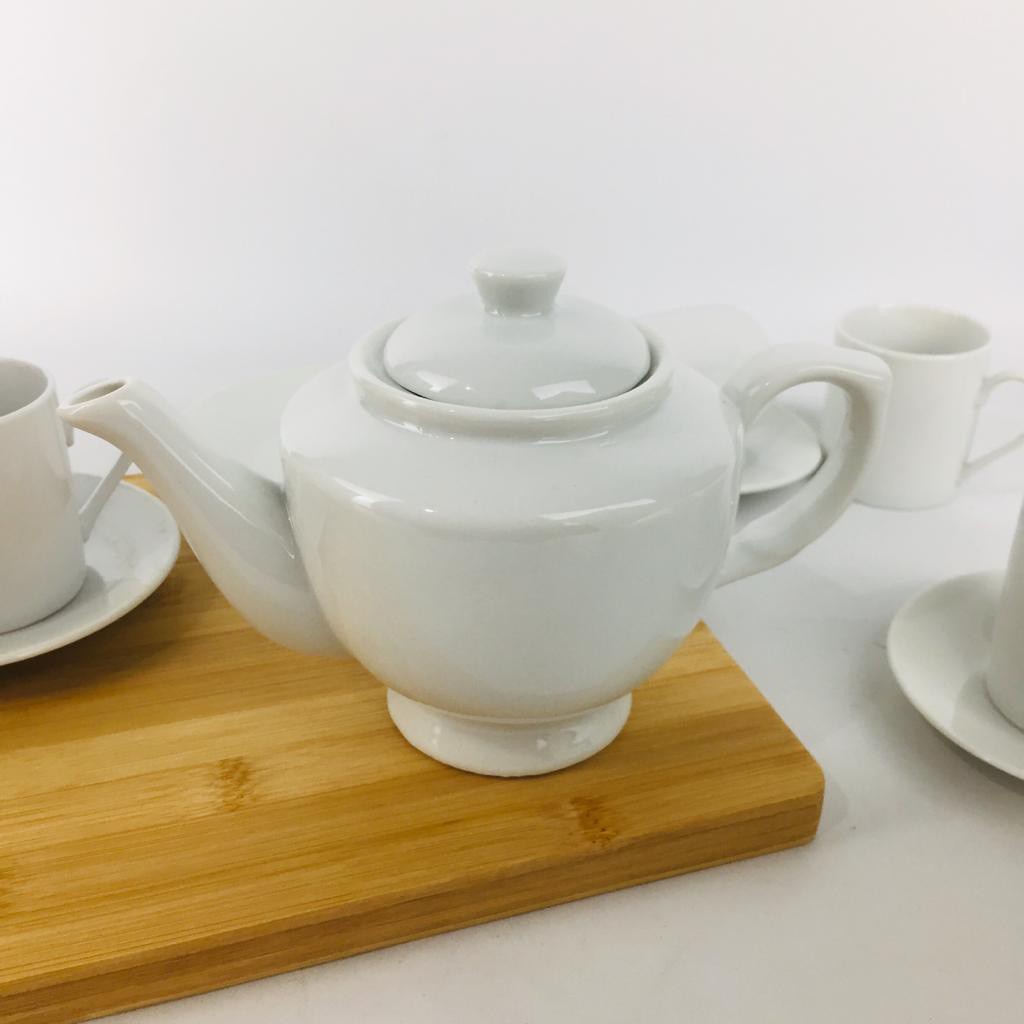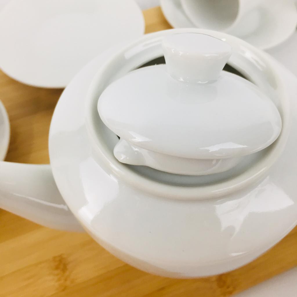 Teko Keramik Set Polos Putih Gelas dan Piring Isi 4pc