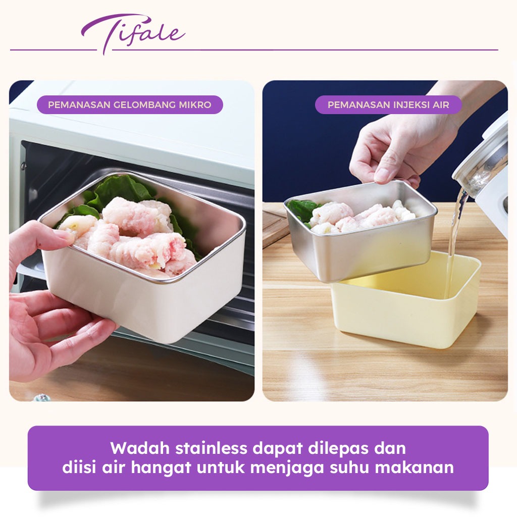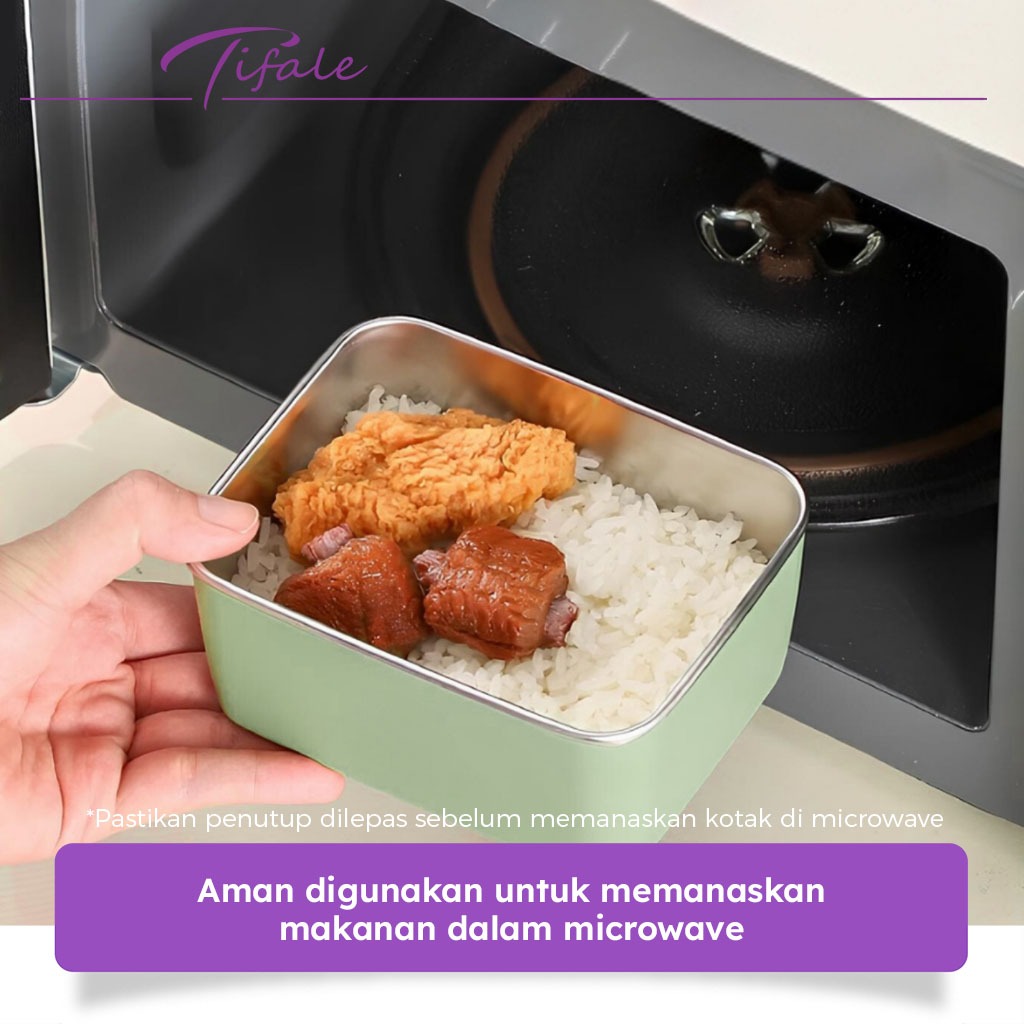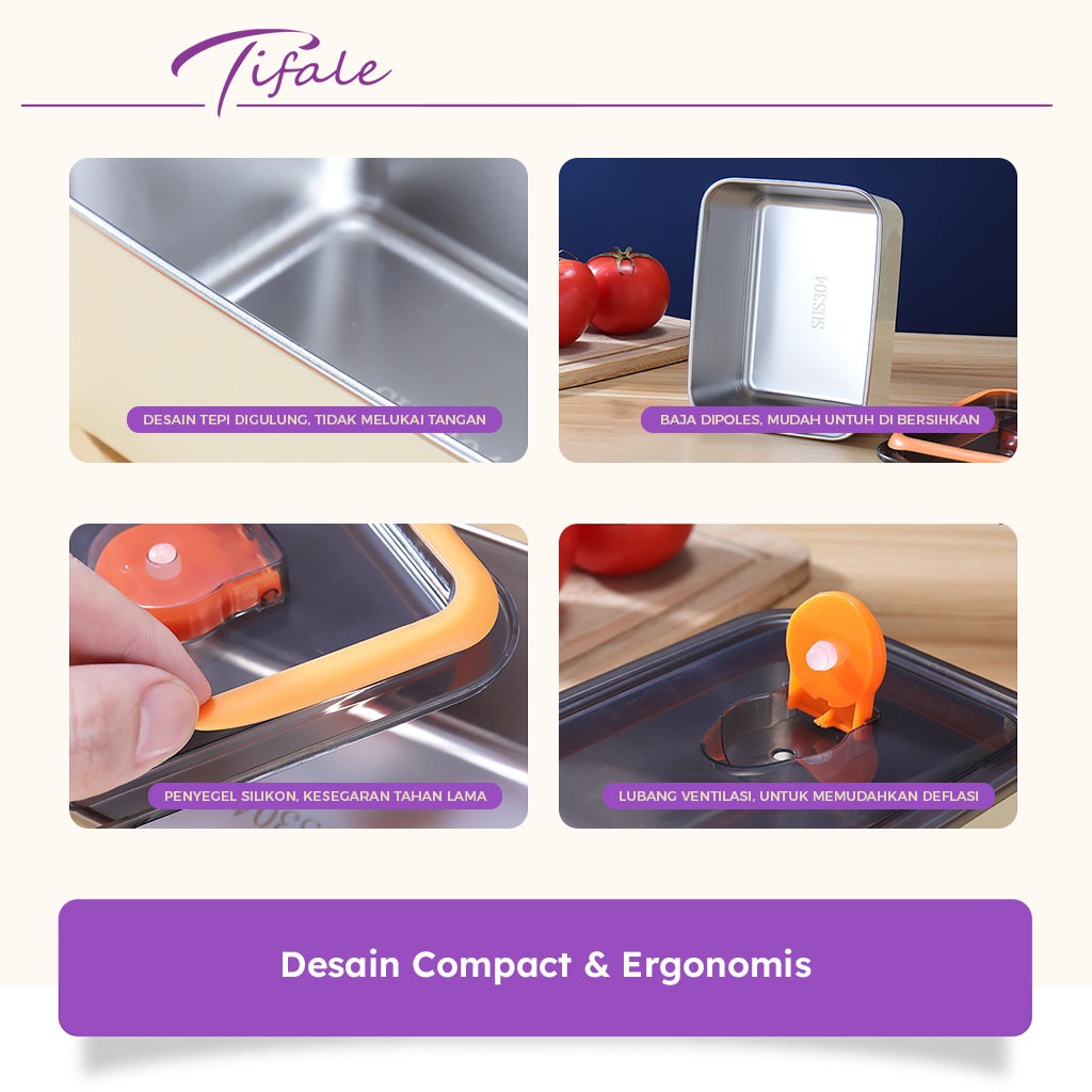 Tifale Kotak Makan Bekal Stainless Steel 4 PCS Kedap Udara Lunch Box Penyimpanan Makanan