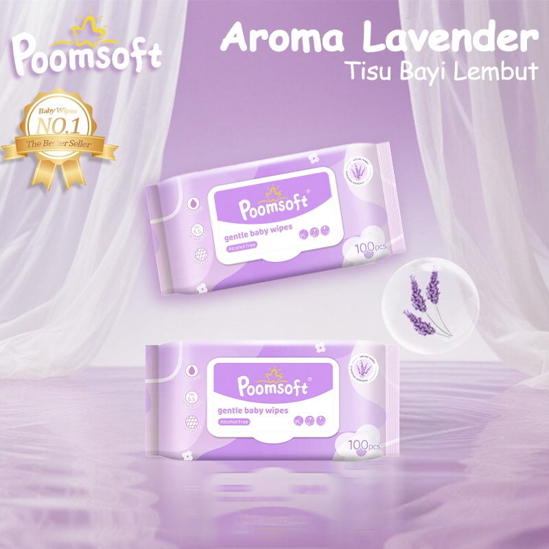 Poomsoft 5 Pack x 100 Lembar Tisu Basah Bayi Lembut Aroma Lavender Bebas (Disposable) Disertifikasi oleh Departemen Kesehatan