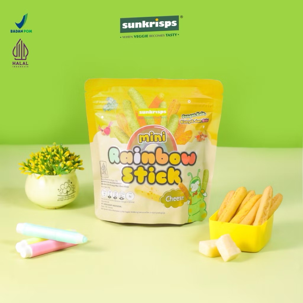 SUNKRISPS Rainbow Stick - Veggie / Cheese - Snack Bayi Anak - Biskuit Stik Pelangi Rasa Sayuran - Sunkrip Stick Keju