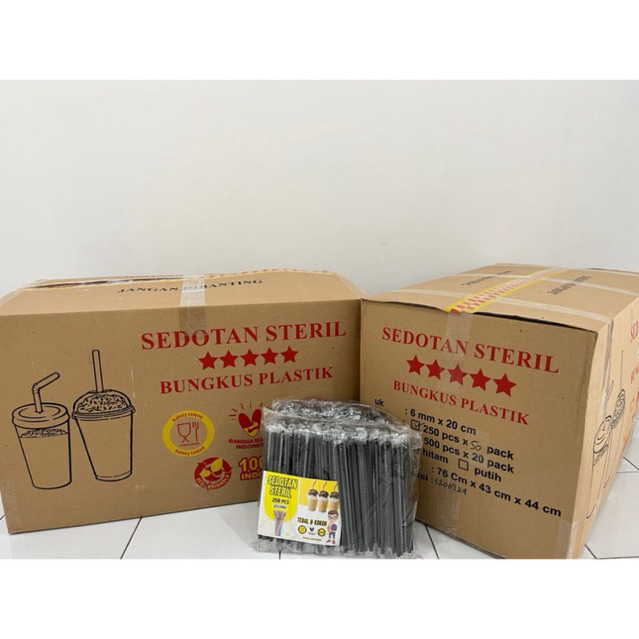 500 PCS Sedotan Steril Higienis 6mmx20cm Hitam Ujung Lancip Runcing / Sedotan Plastik Steril 6mm X 20cm Bungkus Plastik Steril Hitam / Sedotan 620 Teh Solo Lancip Runcing