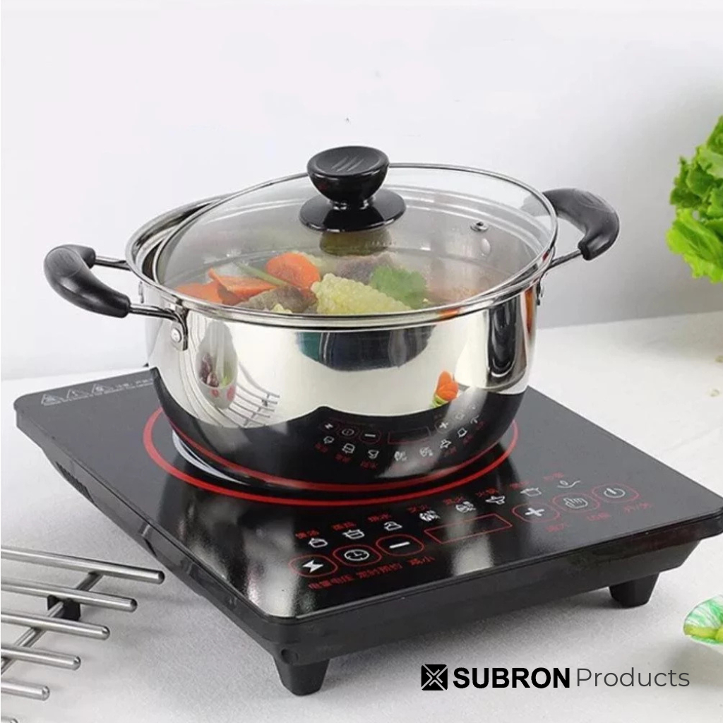 SUBRON Soup Pot 20cm 22cm 24cm 26cm Panci Sup Stainless Steel Tutup Kaca Premium Quality Sauce Anti Karat Serbaguna Kitchenware Kaca Transparan Alas Air Stainless Steel / Panci Sup Stainless Steel Pan