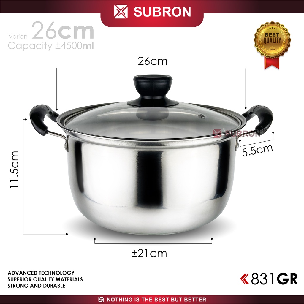 SUBRON Soup Pot 26cm Panci Sup Stainless Tutup Kaca