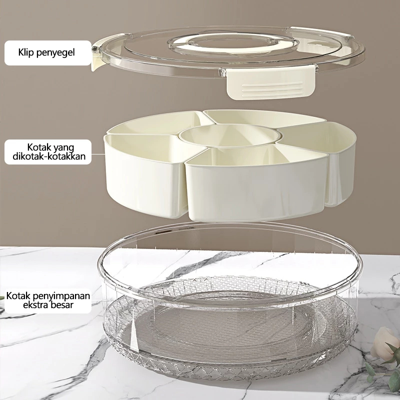 Toples Bulat Makanan Kedap Udara dilengkapi Putar 360 Derajat Gagang Handle Nyaman