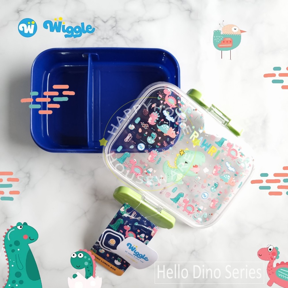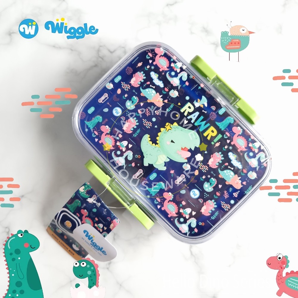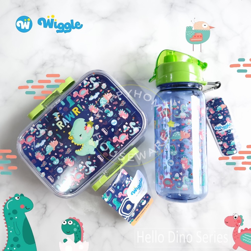 WIGGLE Paket Kids School Hello Dino Kotak Bekal 750ml & Botol Minum 670ml