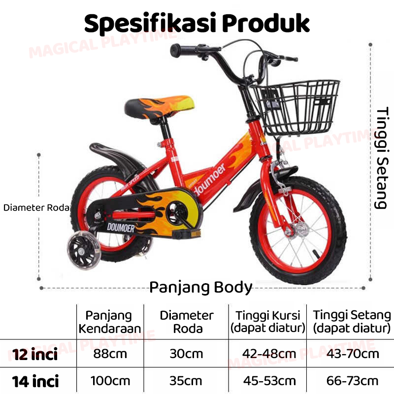 MAGICAL PLAYTIME sepeda anak laki laki kecil Dengan Roda Bantu Rangka Baja Karbon Usia 2-7 Tahun