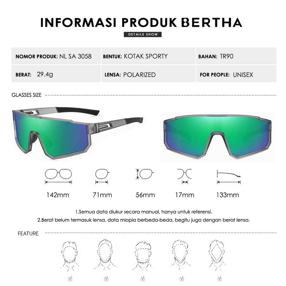 Bertha Kacamata Sunglasses Polarized Anti Silau Style Kotak Sporty Bahan TR90 Nyaman Fashion TerBaru Simple Unisex 3058