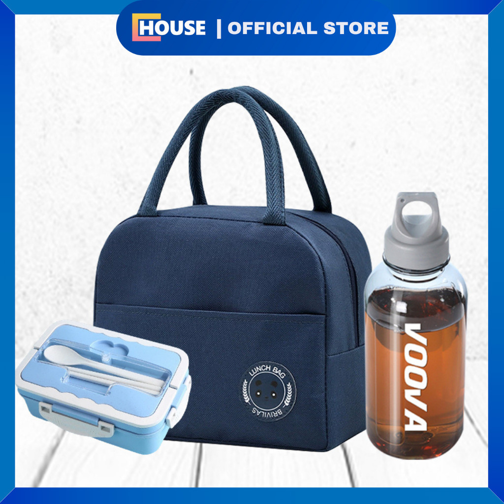 UHOUSE SET Bundling Alat Makan Siang/ Paket Bekal Praktis/ Paket Makan Siang Kotak Bekal + Tas bekal + Botol Minum Sport