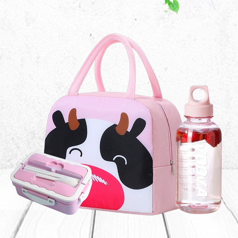 UHOUSE SET Bundling Alat Makan Siang/ Paket Bekal Praktis/ Paket Makan Siang Kotak Bekal + Tas bekal karakter + Botol Minum Sport