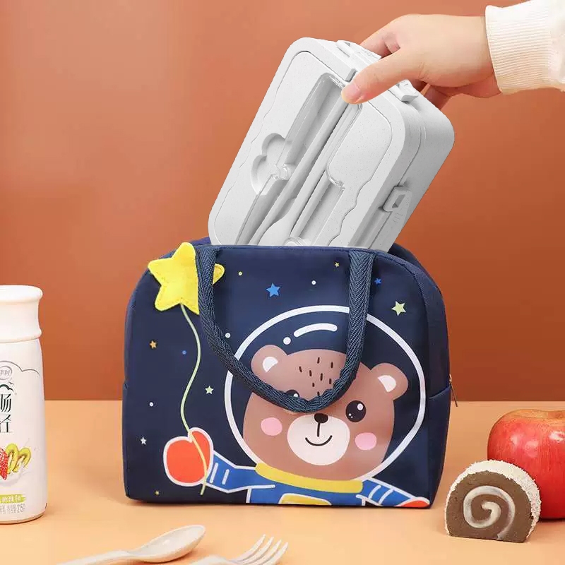 VOOVA Paket Alat Makan Lengkap/ Lunch Bag Lengkap Dengan Lunch Box Dan Botol Minum/ Set Alat Bekal/ Alat Bekal Bundling/ 3 IN 1