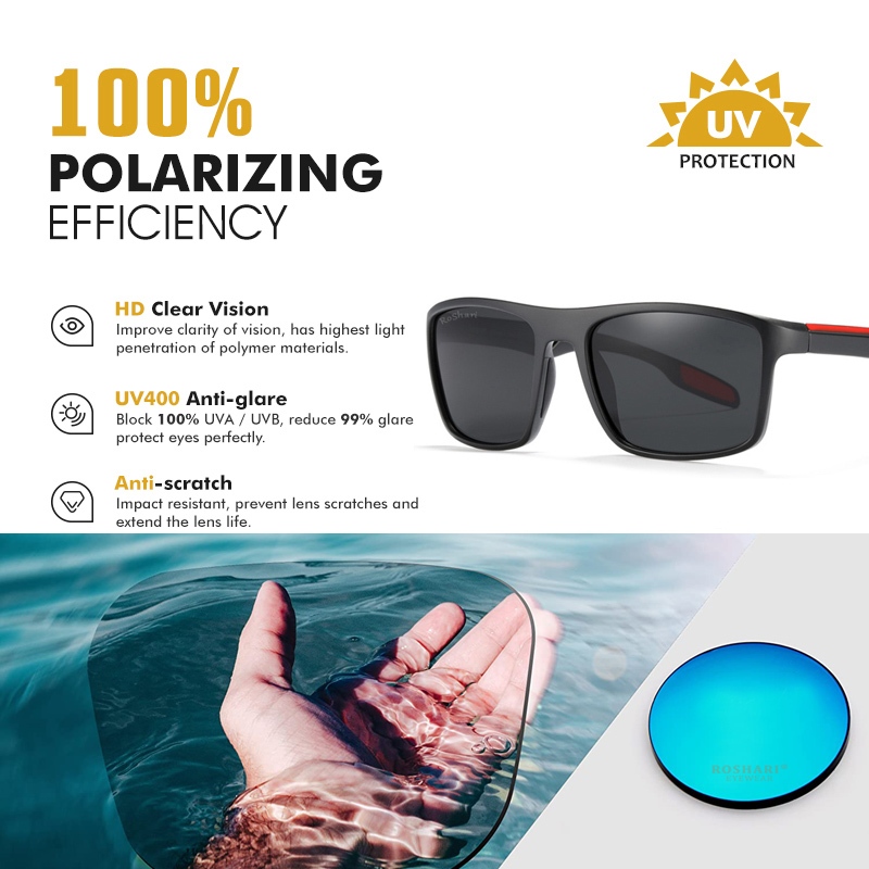 Kacamata Hitam Sunglasses Pria Polarized TR90 Persegi Ultra Ringan Anti UV / Anti Silau ROSHARI P0016