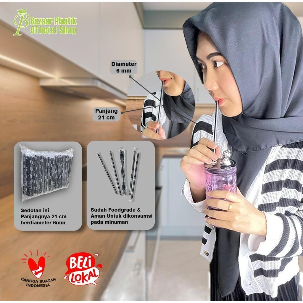 ( PROMO MURAH ) Graha Bunda ( 250 PCS ) Sedotan Minuman / Sedotan Plastik / Sedotan Plastik Hitam Ukuran 21cm x 6mm 250PCS