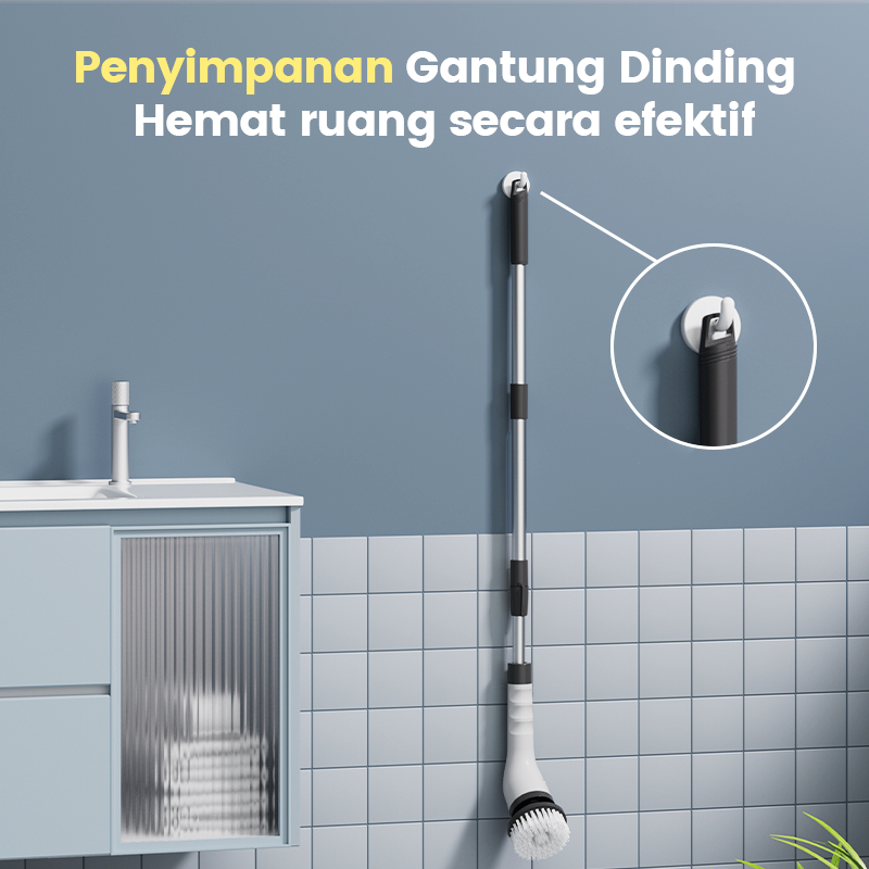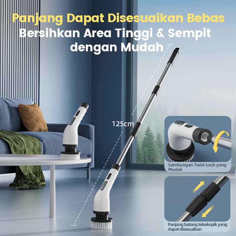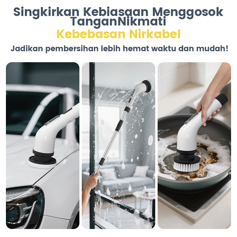【】MODOFO 9IN1 Sikat Pembersih Elektrik Portabel dengan Layar Digital untuk Lantai Kain Kamar Mandi dan Dapur dengan 9 Kepala Sikat