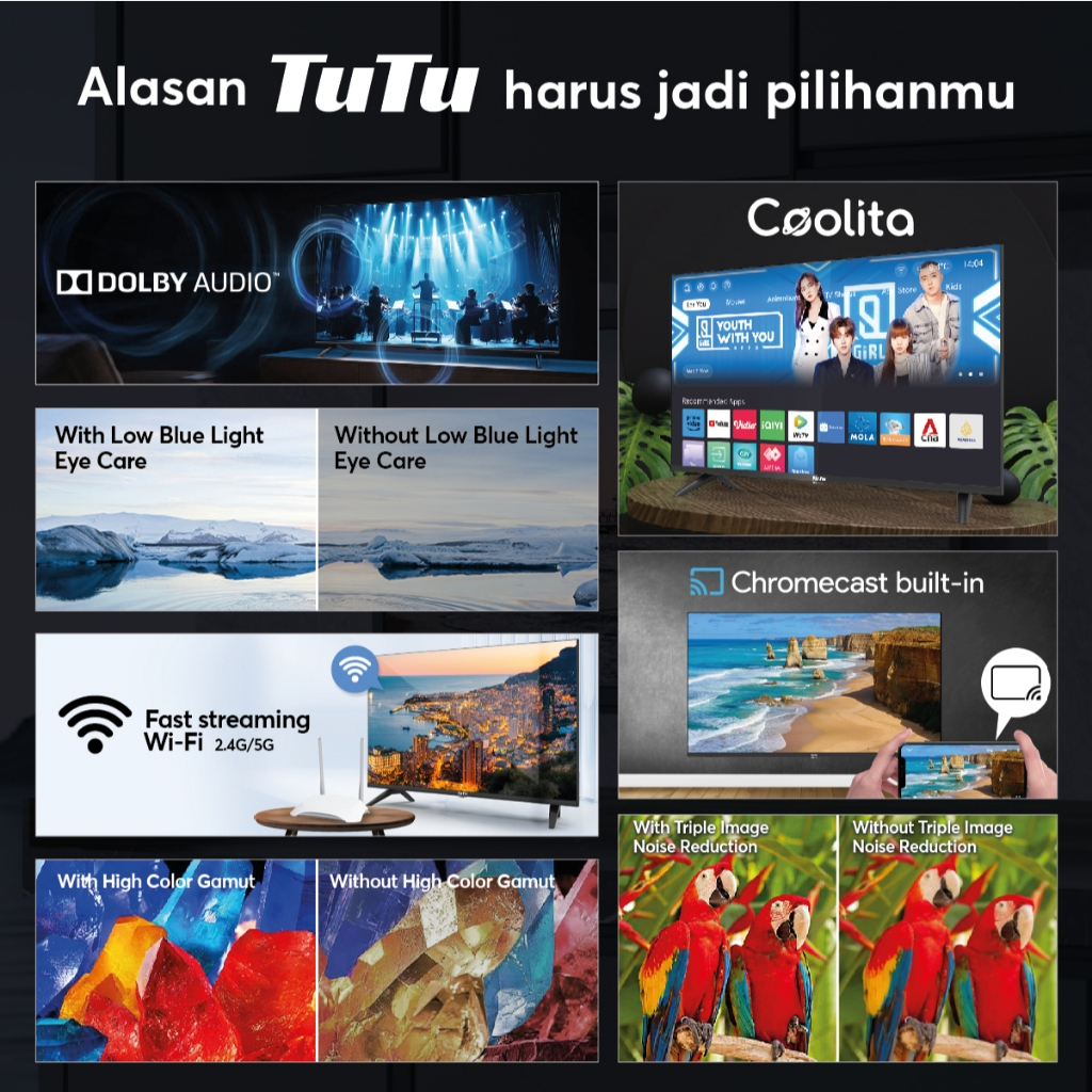 TUTU Smart TV 32inch Coolita 3.0 HD Dolby Audio Digital Televisi WiFi HDMI Boundless Low Blue Light TV Cast Mirroring Yo