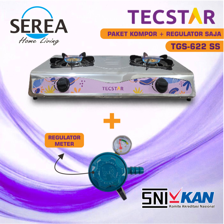 Kompor Gas TECSTAR 2 Tungku RI-524A Turbo Stenlis Portable Komplit Murah Quantum Tanam Sanex Miyako Rinnai Advance 1