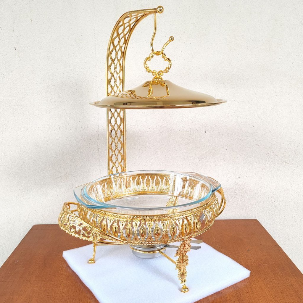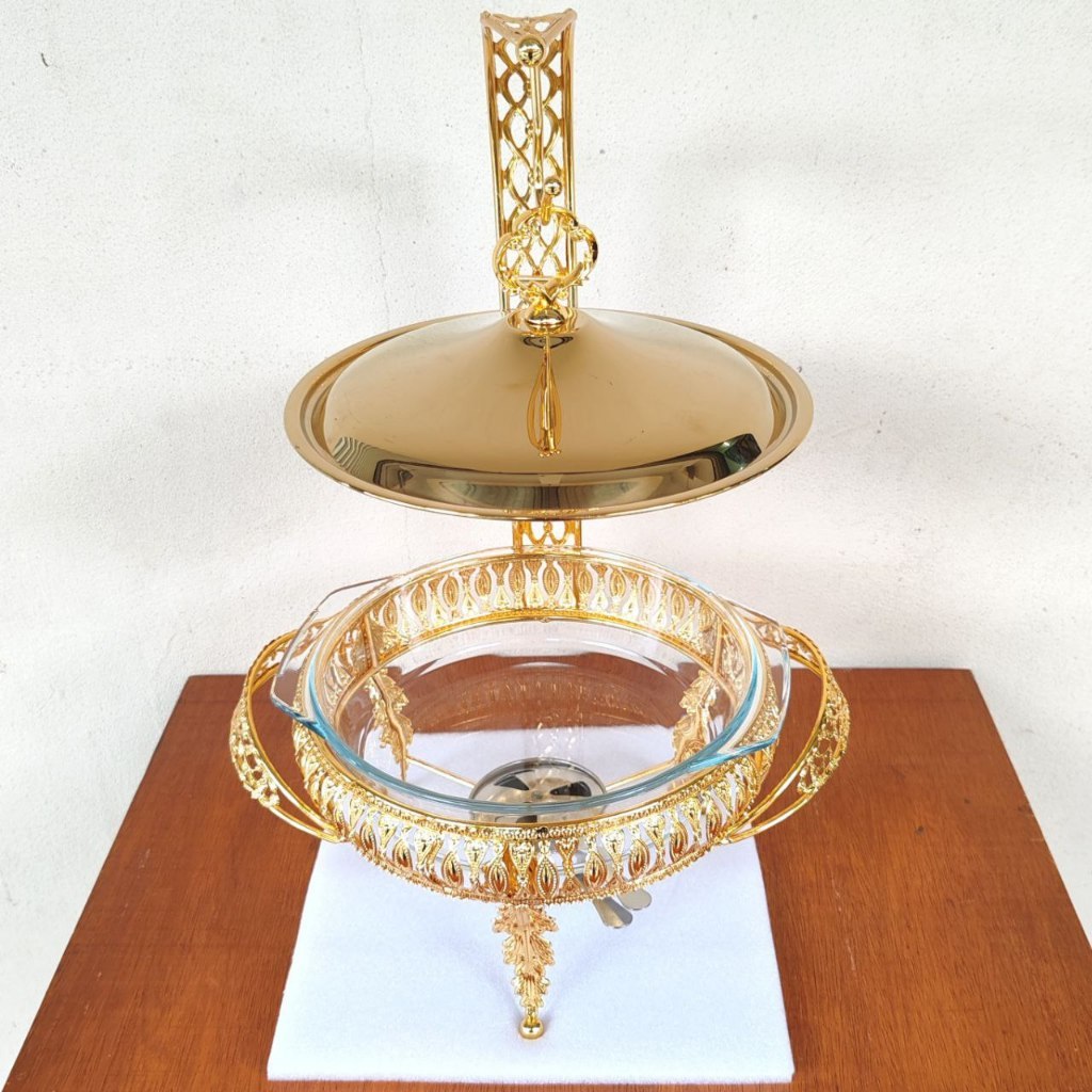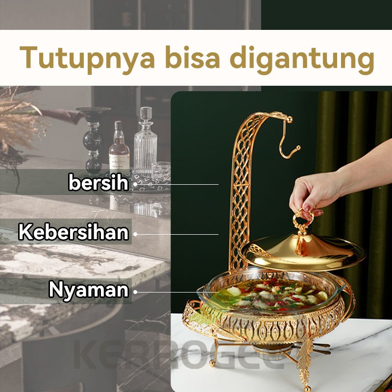 (Ready) Food Warmer Wadah Kaca Tebal Gold Gold Rolltop Hanging chafing 2L/3L Cover Chafer Perasmanan Pernikahan Mewah Ba
