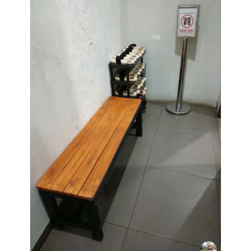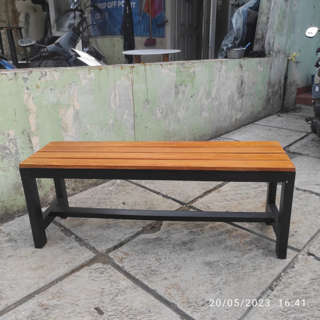 Bangku Panjang Ukuran 120x35x45 Full Kayu Warna Natural Hitam