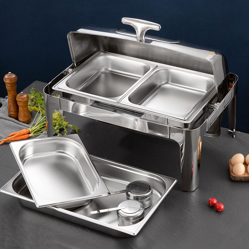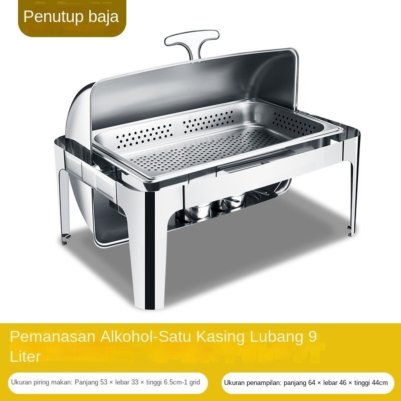 Wadah Prasmanan Chafing Dish Roll Top Persegi Kaca Stainless Steel CF012