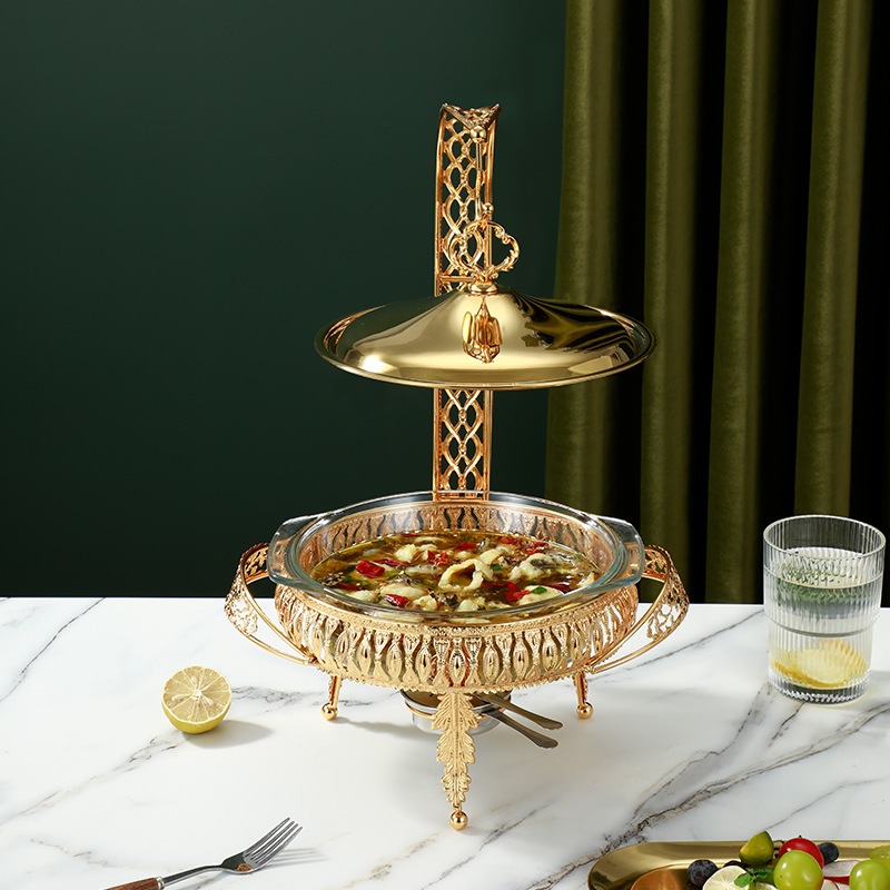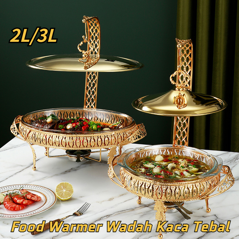 ⭐Garansi⭐2L/3L Food Warmer Wadah Kaca Tebal Gold Food Warmer Wadah Baki Kaca Tebal Gold Food Warmer Perasmanan Pernikaha