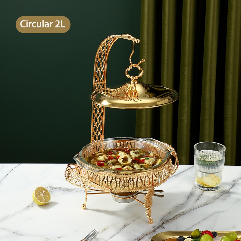 [Ready Stock] Food Warmer Wadah Kaca Tebal Gold 2L/3L Food Warmer Wadah Baki Kaca Tebal Prasmanan Stainless Tutup Kaca G