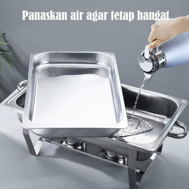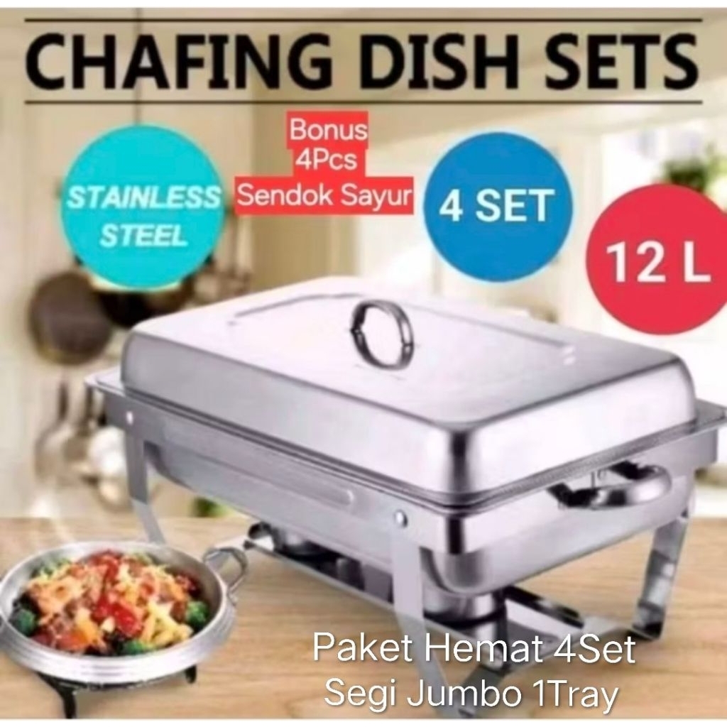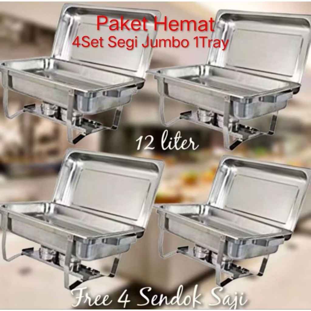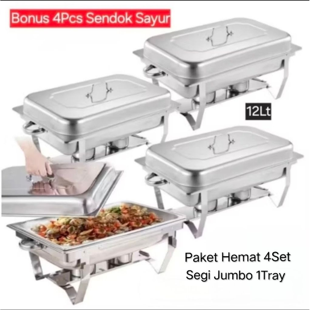 Chafing Dish / Prasmanan Segi Jumbo Paket Hemat 4Set + Bonus 4Pcs Sendok Sayur Premium Quality Stainless Steel