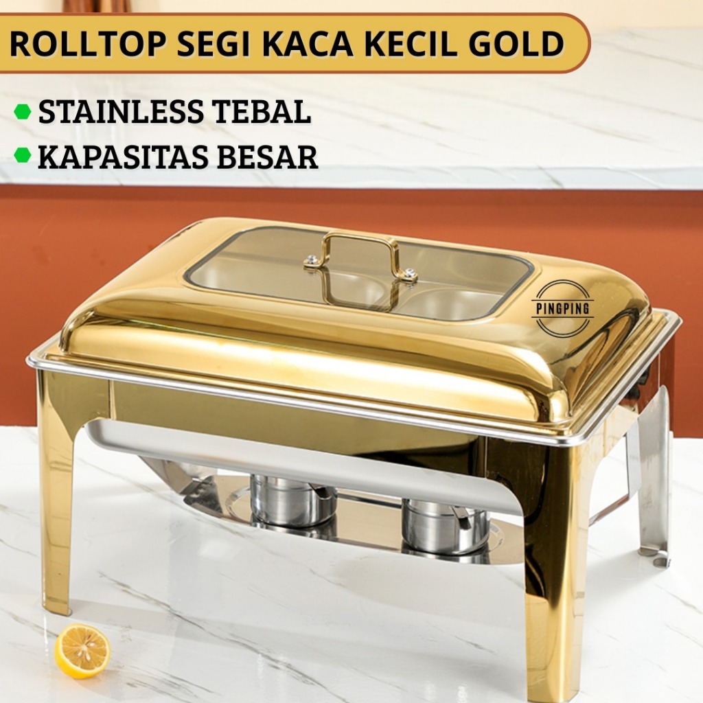 Chafing Dish / Rolltop Segi Kaca Kecil Catering Stainless Steel/tempat prasmanan stainless/tempat prasmanan/set tempat l